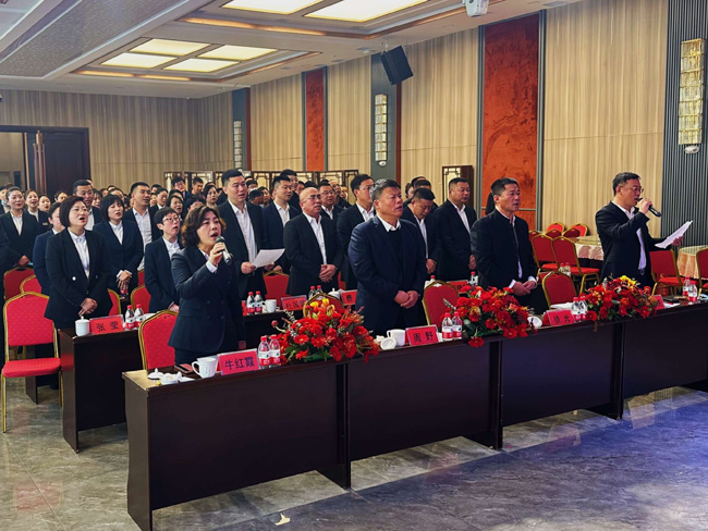 会议最后全体员工起立共同歌唱集团歌曲《紫气东来》,为此次会议画下圆满的句号。