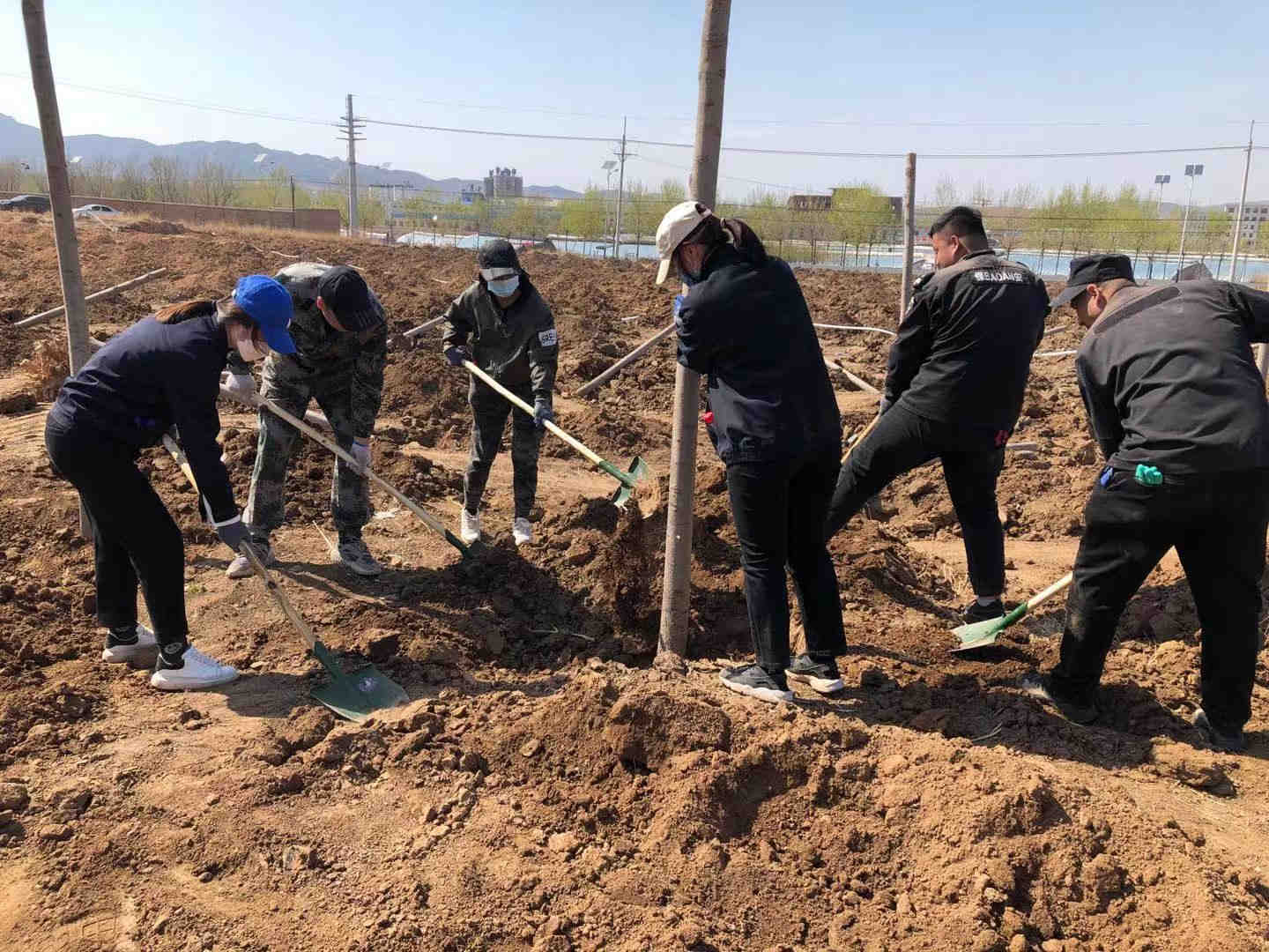 在绿化专业技术人员现场指导下,大家三两一组,分工明确,挥锹铲土、挖坑扶苗、培土夯实,每一道工序一丝不苟,众人热情高涨、干劲十足,现场一片繁忙景象。在大家齐心协力的合作下,一棵棵树苗按序栽好,原本光秃秃的草坪即刻一片绿色盎然、生机勃勃,整体环境焕然一新。浪漫的法桐、温柔的丁香、坚韧的忍冬、五彩的锦带、妖娆的京桃、如蓬的馒头柳、朴实的黄杨、绚丽的榆叶梅,一花一世界,一叶一菩提,值下一棵树,收获万点绿。通过这样的机会,让各自忙碌的我们,加强了沟通,增进了友谊。这一道道的风景线,把齐心协力的美好,发挥的恰到好处。人人躬身实践的植树活动让我们更加珍惜身边的一草一木,多值一棵树,多添一株绿色,多一份清新空气。
