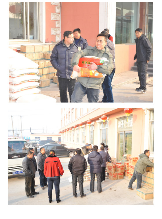 为体现企业对员工的关怀,让在岗位上辛勤工作一整年的员工们过上一个愉快、祥和的春节, 2012216日,农历腊月二十三,集团向员工发放了食用油、大米、白面等春节福利品。我公司组织员工到集团总部领取春节福利。每位员工都兴高采烈地拿着福利,满载而归。现场洋溢着一片温馨和谐的氛围。